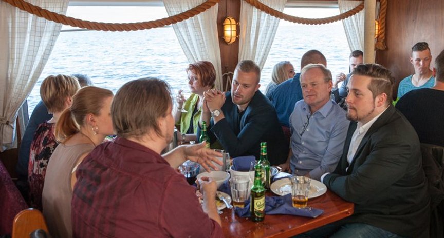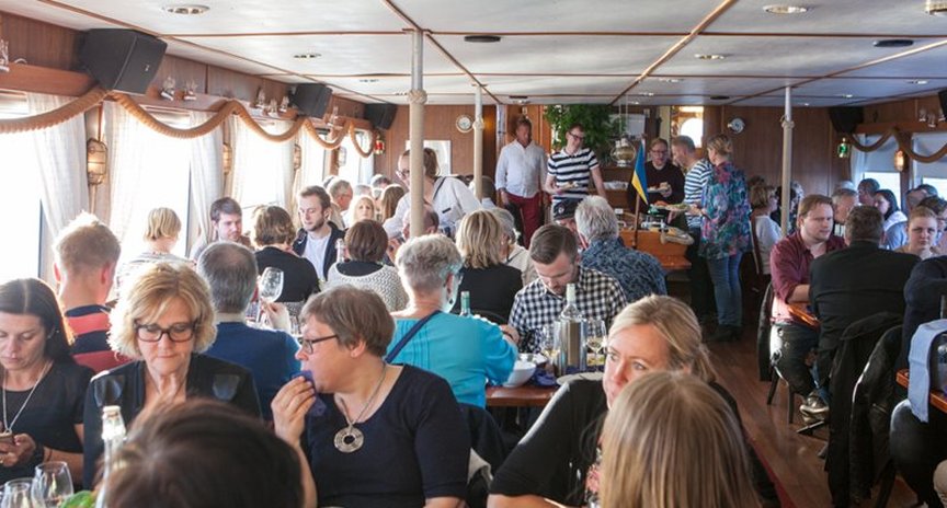 Vi bjuder in till Räkfrossa med Laponiabåten, till ett pris av 200 SEK/person. I priset ingår mat, vin, öl eller vatten. Vi samlas på Byggmästareföreningens kontor kl 18.00 för lite information, mingel och en drink innan Laponias avgång kl.19.00.