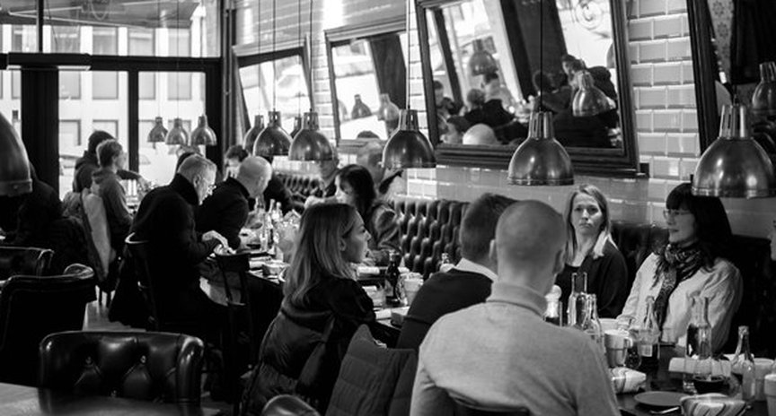 Det var god stämning när lokalen fylldes med förväntansfulla lunchgäster och samtalet gled